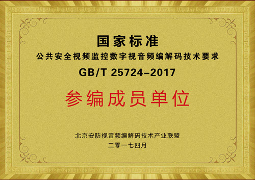國家標準公共安全視頻監控數字視音頻編解碼技術要求參編成員單位