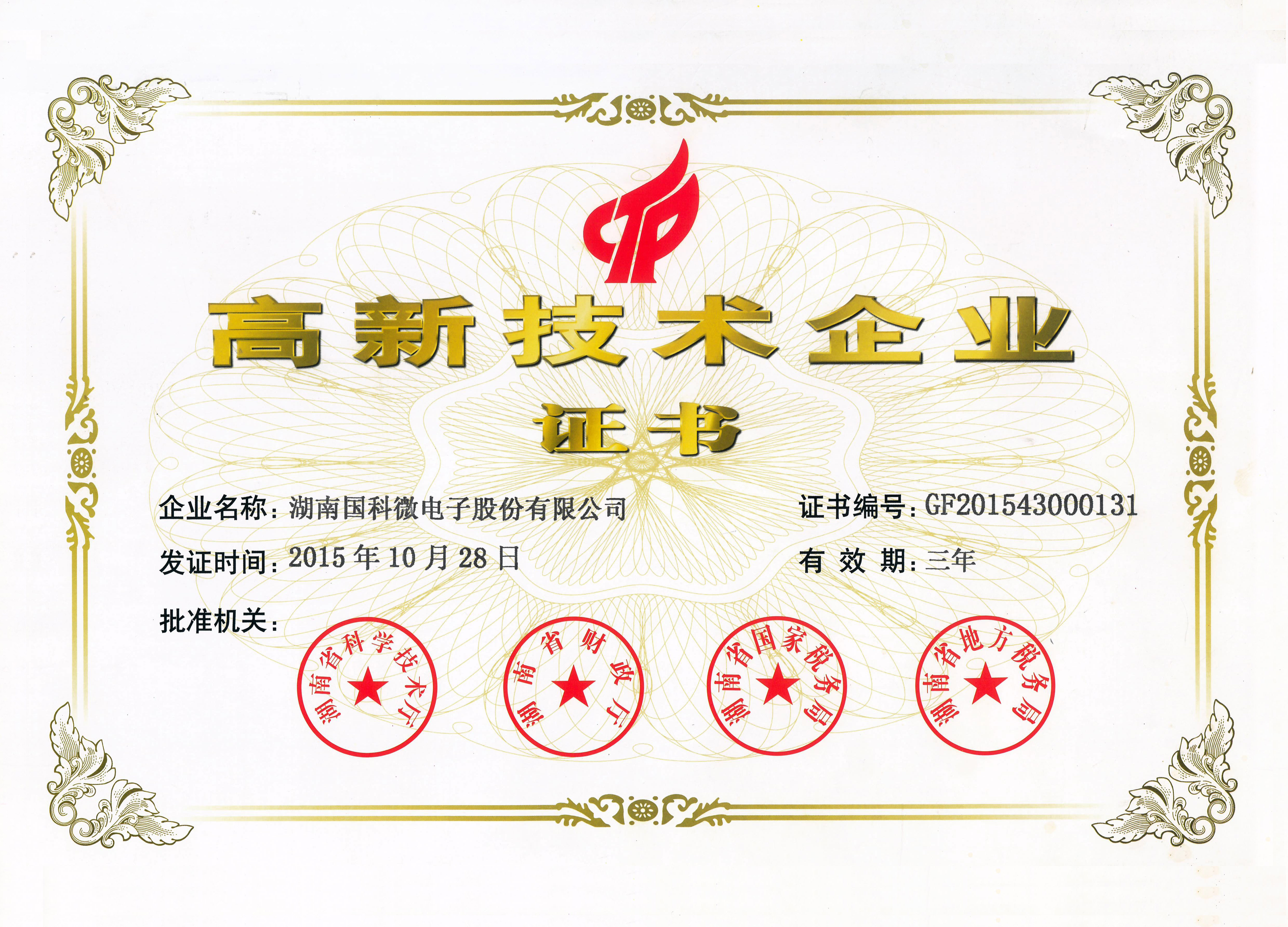 高新技術企業證書